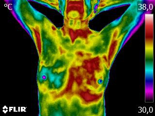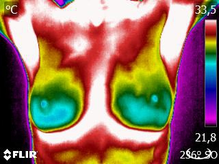La thermographie est un outil une technique de dépistage précoce particulièrement efficace pour les seins, puisqu’elle permet de détecter d’éventuelles anomalies (telles que tumeur, cancer, kyste ou mastite, …) avant même l’apparition d’une lésion qui pourrait être détectée par d’autres moyens.